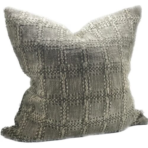 Textured Check Linen Cushion – Khaki